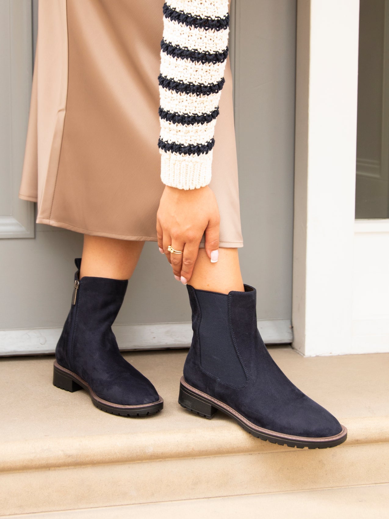 Our Dalston faux suede Chelsea boot is a timeless classic and a must-have style in your winter wardrobe. Made with luxurious faux suede, a padded insock and featuring a sleek stretch panel, these boots effortlessly blend style and comfort.