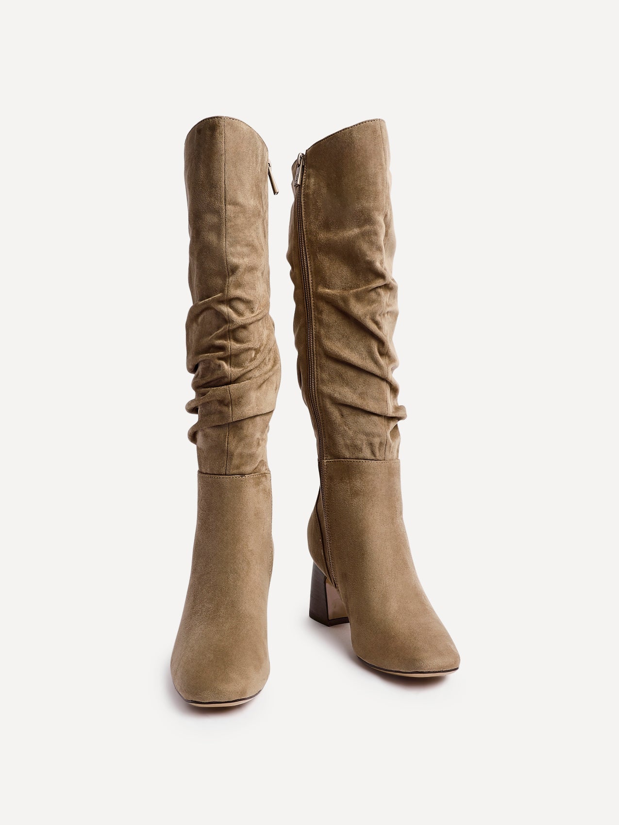 Our Alpine high leg boots are the perfect finishing touch to any outfit. Featuring a square toe, ruched detailing, and a convenient half zip, they’re effortlessly stylish and easy to wear. Set on a stacked 6.5cm block heel with a cushioned insole and faux fur lining, keeping you warm and comfortable.