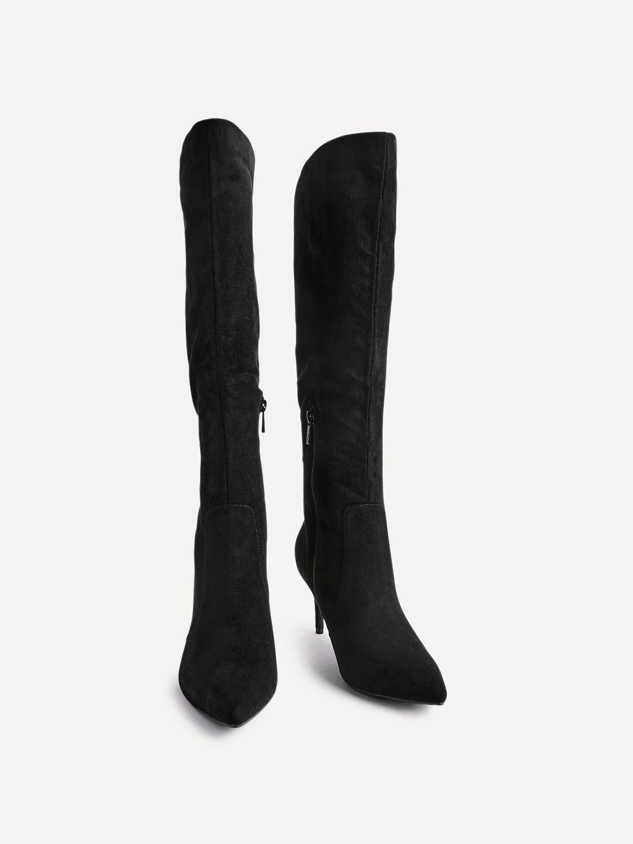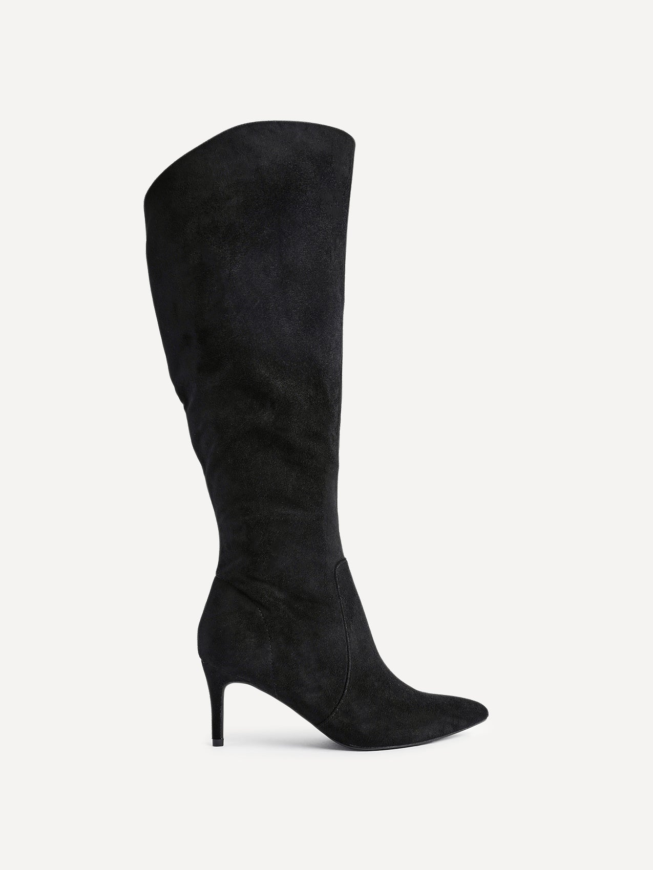 Make a statement with our Ambition elegant high leg boots, crafted from high-quality faux suede for a smooth, refined finish. Featuring an asymmetric top line - cut higher at the front for a sleek, knee-high silhouette and lower at the back for ease of movement. Set on a slim 7cm stiletto heel for a flattering lift. Finished with a soft faux fur lining, cushioned inner sock, and a full inside zip for easy wear, they blend bold fashion with all-day comfort. Perfect for elevating all looks with effortless style.