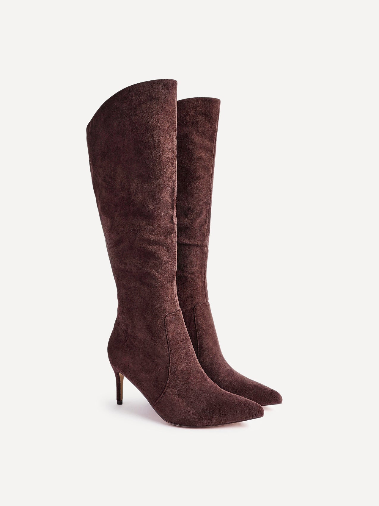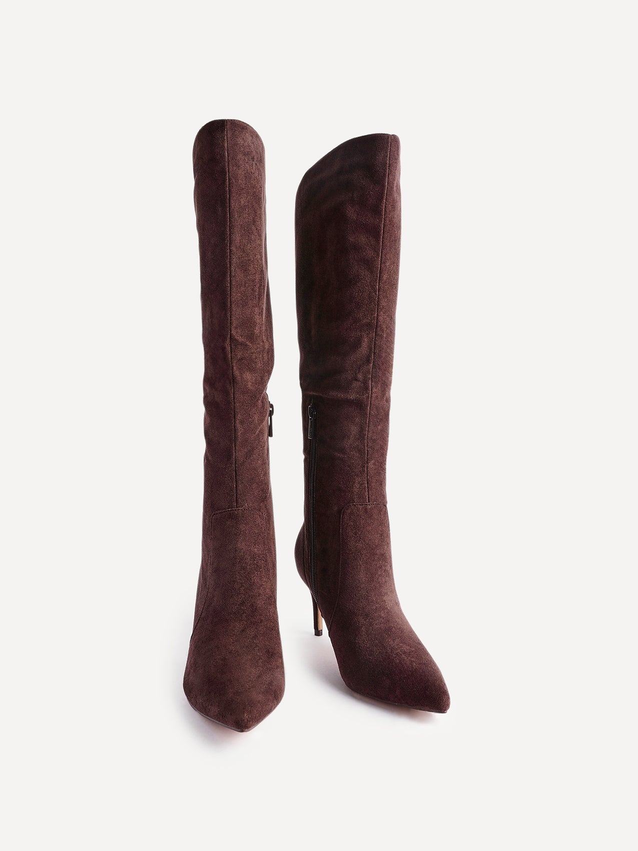 Make a statement with our Ambition elegant high leg boots, crafted from high-quality faux suede for a smooth, refined finish. Featuring an asymmetric top line - cut higher at the front for a sleek, knee-high silhouette and lower at the back for ease of movement. Set on a slim 7cm stiletto heel for a flattering lift. Finished with a soft faux fur lining, cushioned inner sock, and a full inside zip for easy wear, they blend bold fashion with all-day comfort. Perfect for elevating all looks with effortless style.